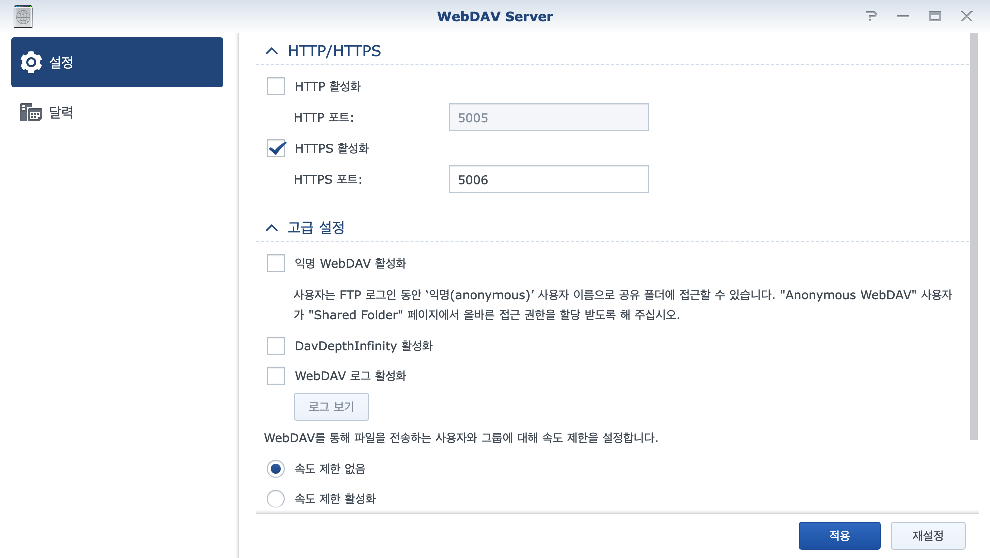 webDAV Server 를 열어서 아래와 같이 https 활성화 포트를 열어준다.