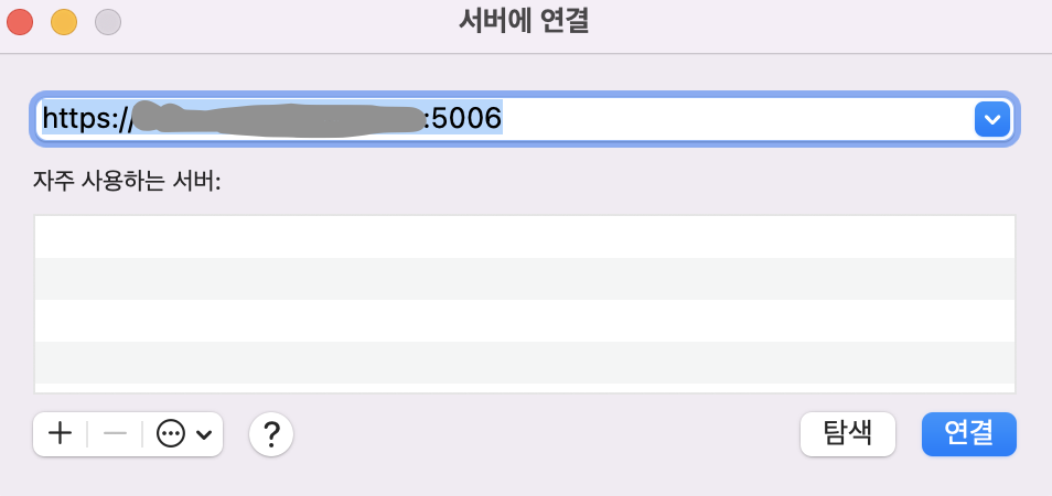 서버연결 IP 또는 도메인 주소 입력하고 연결, 계정입력하면 finder 에서 확인 할 수 있다.