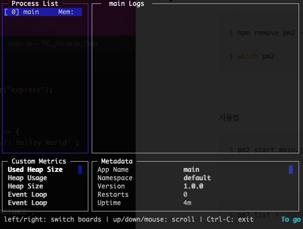 $ pm2 start main.js #실행하고자 하는 js 파일명