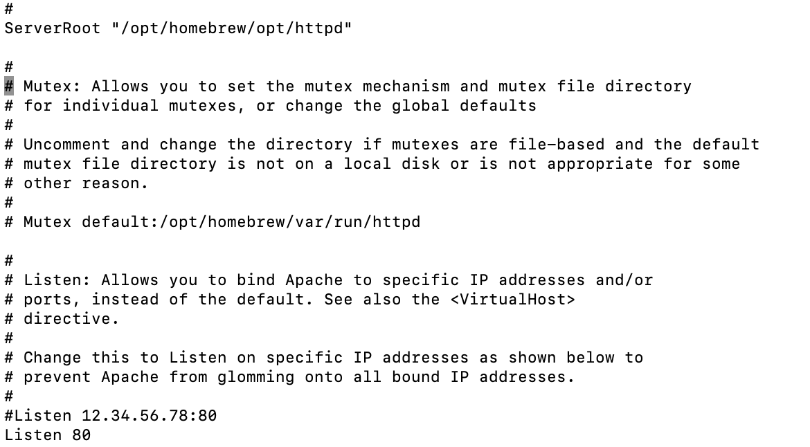 | 구성 파일 | /etc/apache2/httpd.conf | /opt/homebrew/etc/httpd/httpd.conf |