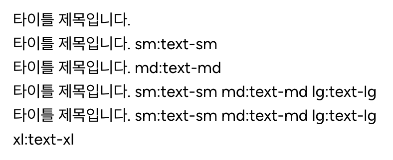 <div class="sm:text-sm lg:text-2xl">타이틀 제목입니다.</div>