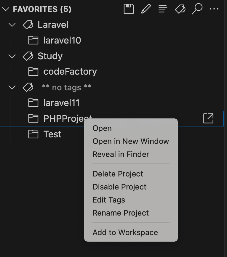 VScode 에서 개발중인 프로젝트를 즐겨찾기 할 수 있는 곳이다.