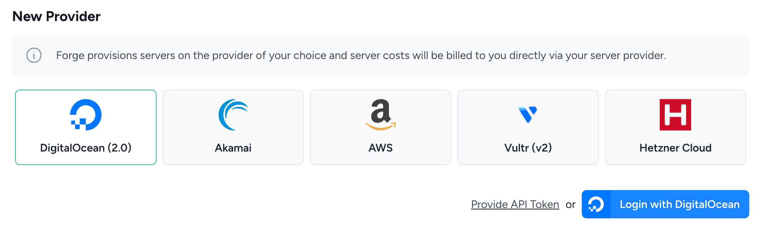 Forge 는 라라벨을 호스팅 해주는 서버 업체가 아니라, AWS 또는 DigitalOcean 호스팅 업체에 서버 세팅과 소스 파일을 자동으로 배포해주는 자동화툴 서비스를 제공해 준다. 즉 세팅과 배포를 대신해 준다.